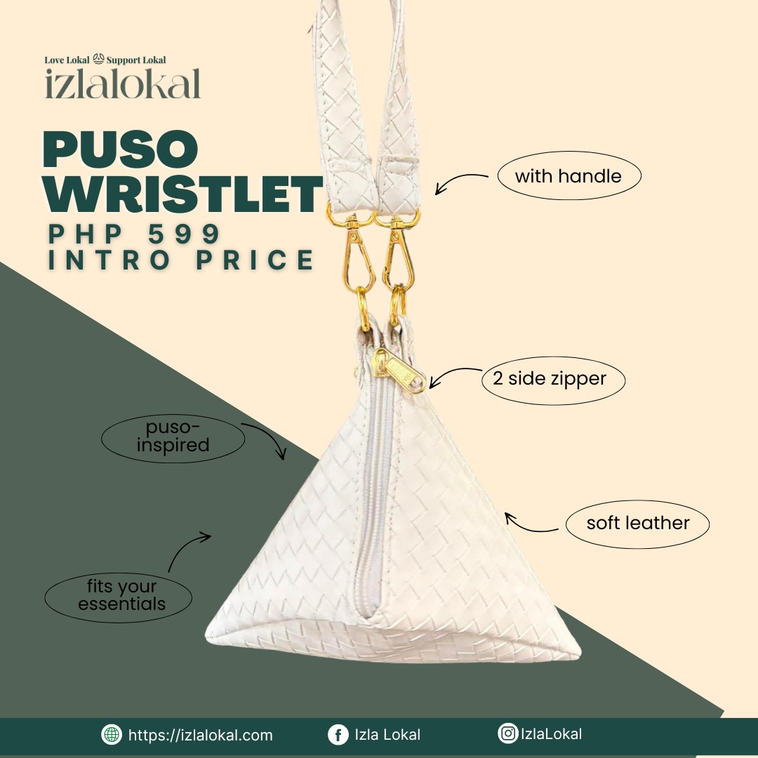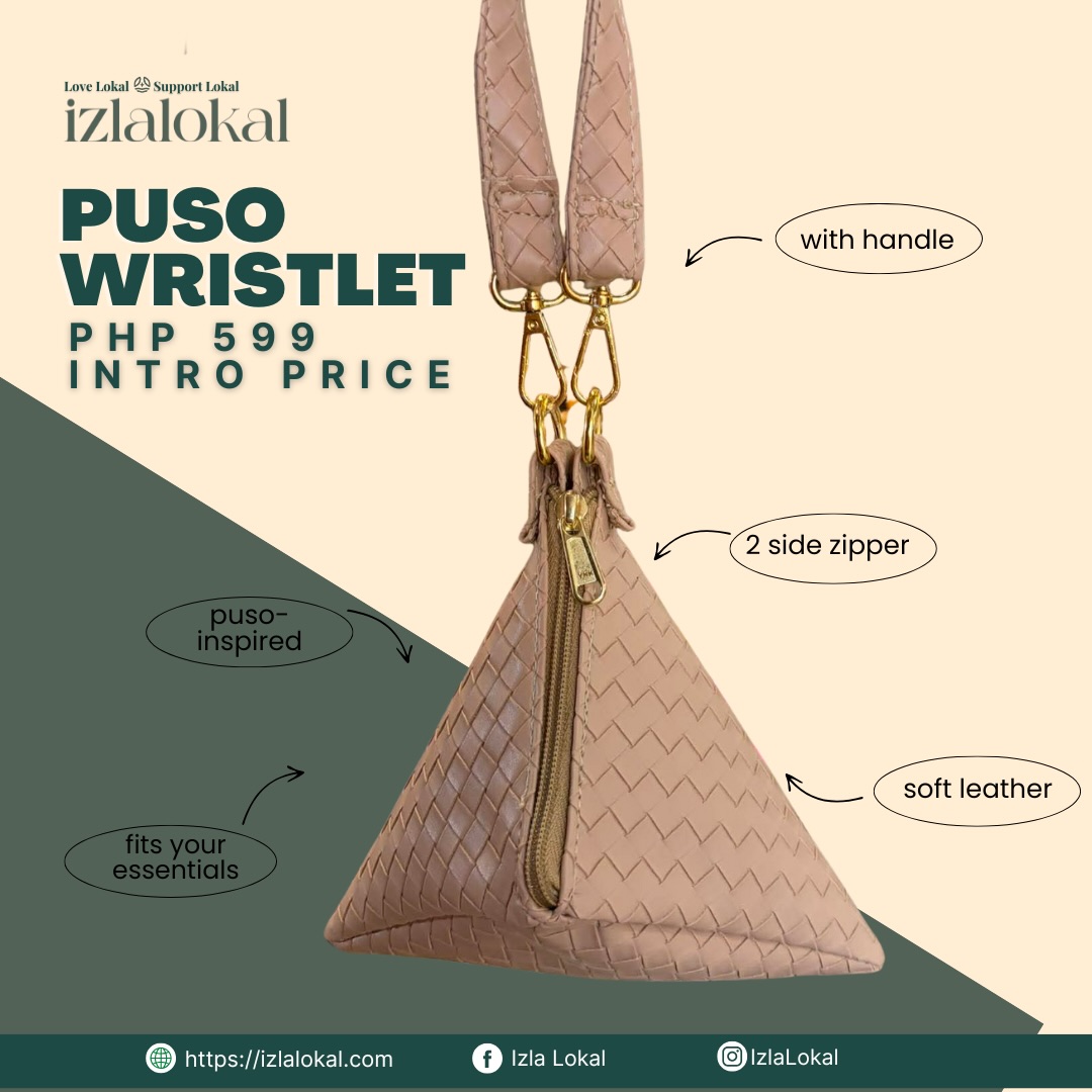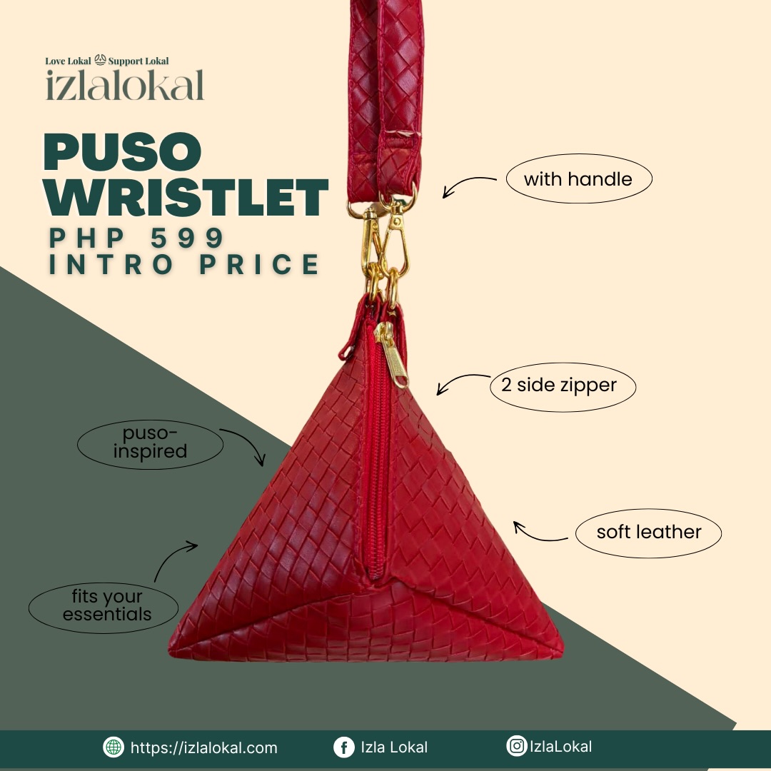 Inspired by ππ²π―πβπ πΆπ°πΌπ»πΆπ° π½πππΌ or hanging rice, this 7x7 inch faux leatherette wristlet blends culture with everyday style. It features two-sided zippers, hooks for your favorite bag charms, and enough space to fit your phone and daily essentials.