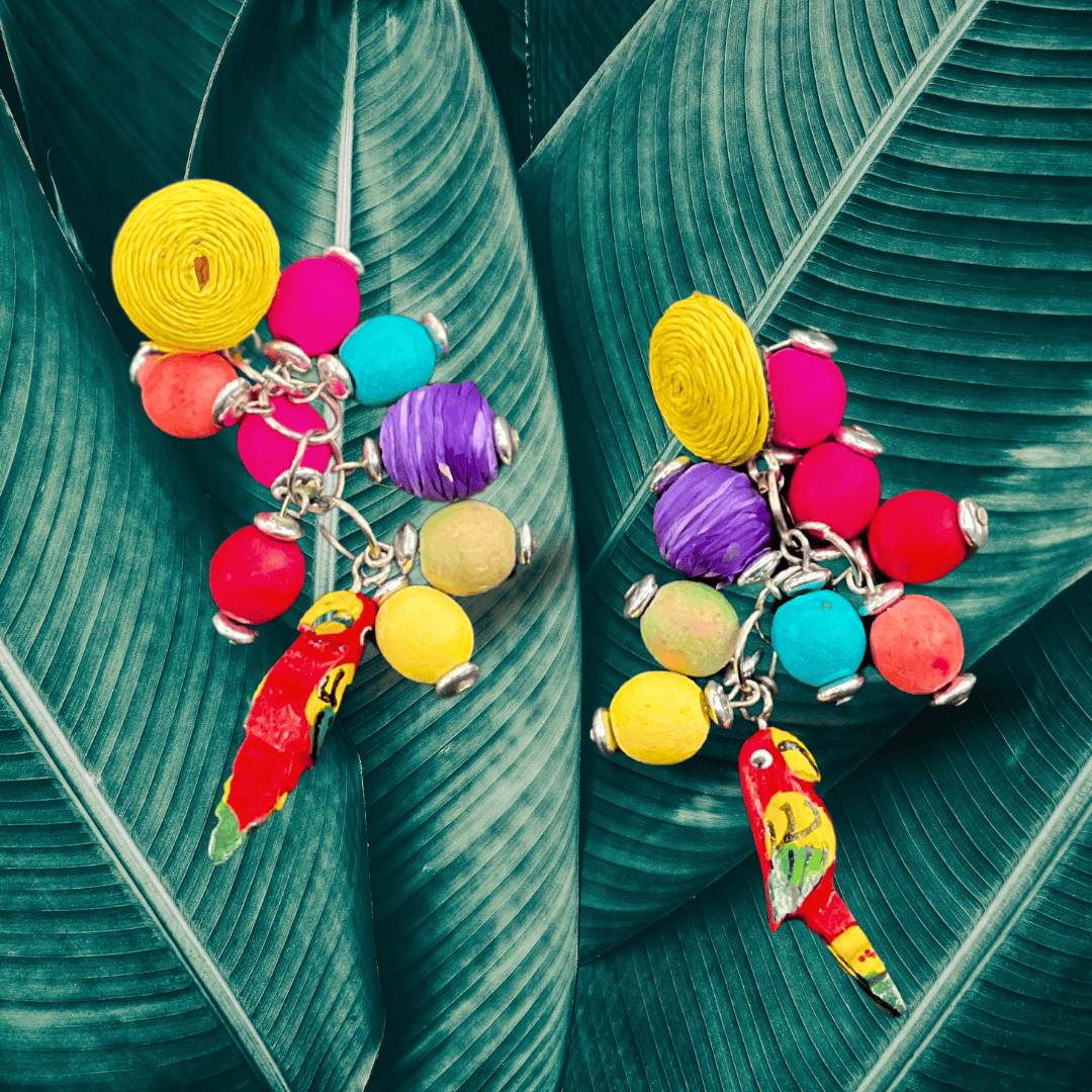 Make a bold statement with these vibrant Colorful Parrot Earrings, handcrafted from natural wood and accented with colorful thread designs. Each earring captures the lively charm of parrots, blending earthy wooden elements with playful pops of color. Lightweight and eco-friendly, these earrings are perfect for adding a tropical touch to your wardrobe, whether for casual days or special events. Let your style take flight with these unique and cheerful accessories!