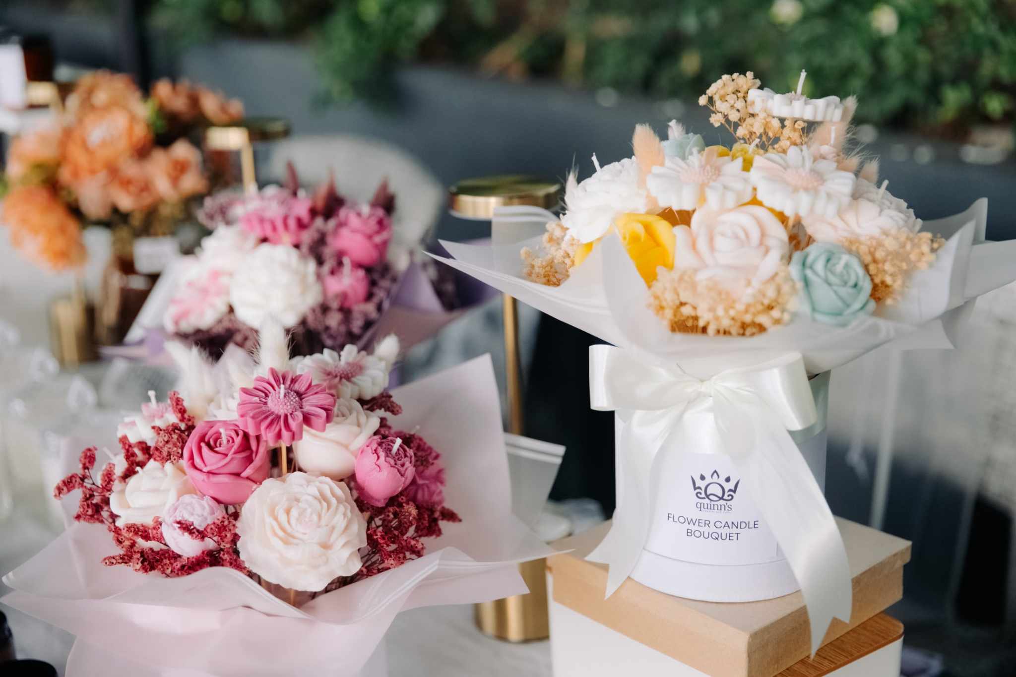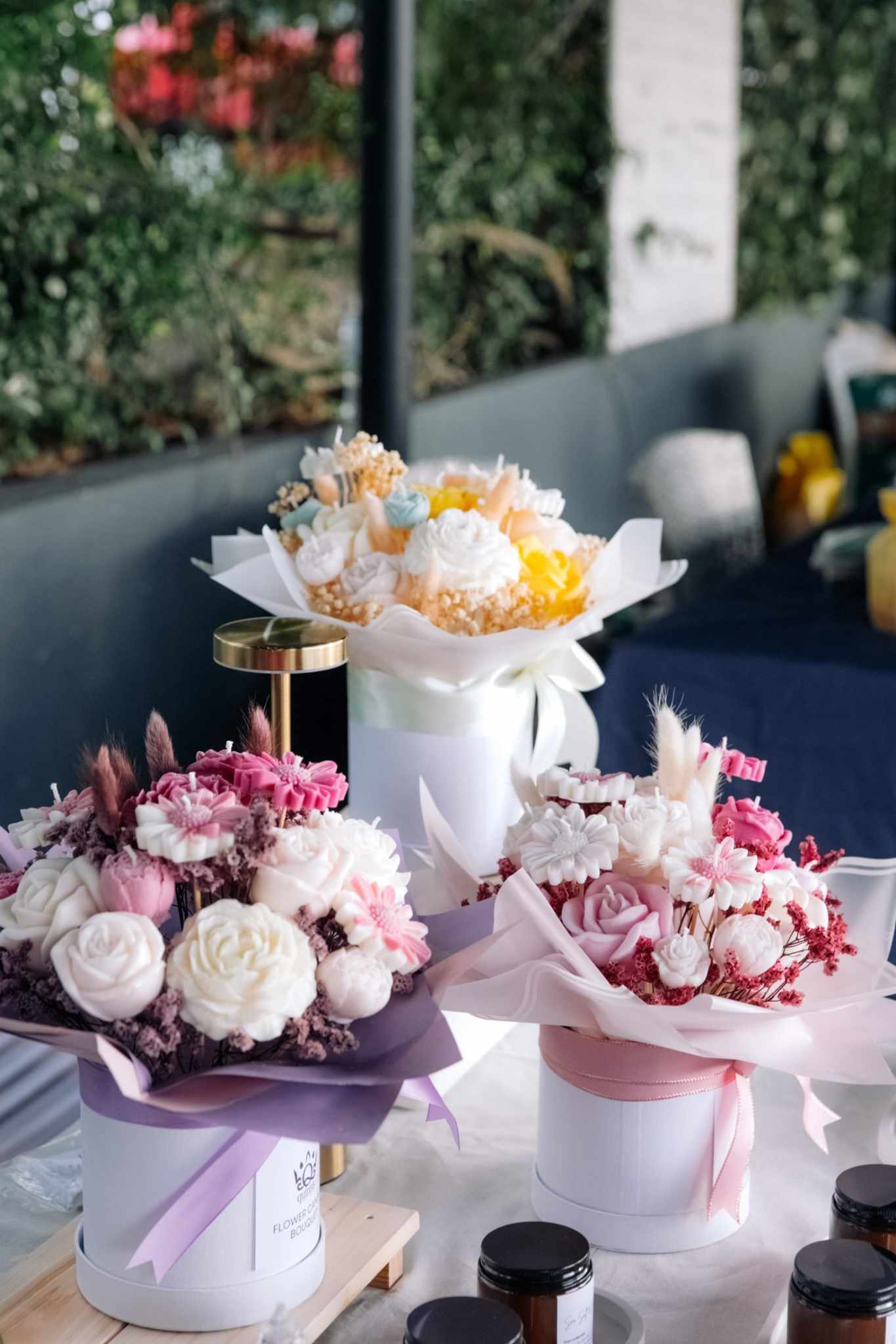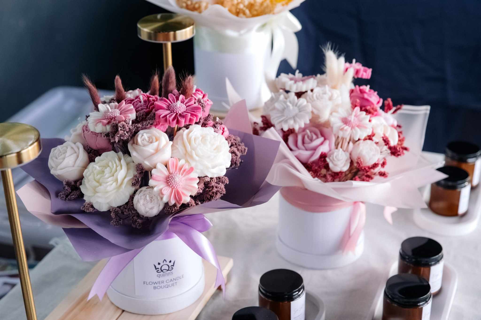 Flower Candle Bouquet is a mixture of molded scented flower candles and real dried flowers. Colors can be customized depending on your request. Open for pre order.