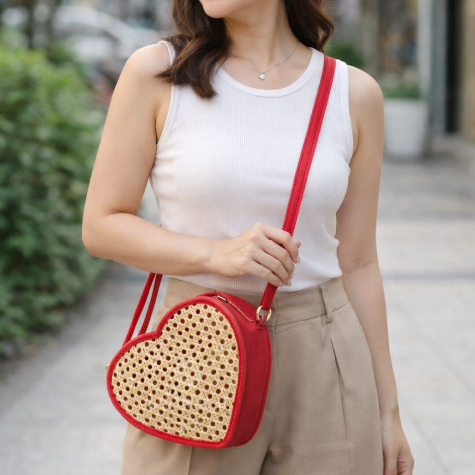 Our Handmade Heart Bag is thoughtfully crafted by local artisans, designed to be both charming and functional. Measuring 8 × 9 × 3 inches, it’s the perfect size to hold your everyday essentials—makeup, car keys, phone, wallet, and more. Designed with versatility in mind, this bag comes with a detachable sling, allowing you to wear it crossbody for daily errands or carry it as a clutch for date nights and special occasions. This bag is pre-order. We ship nationwide and worldwide.