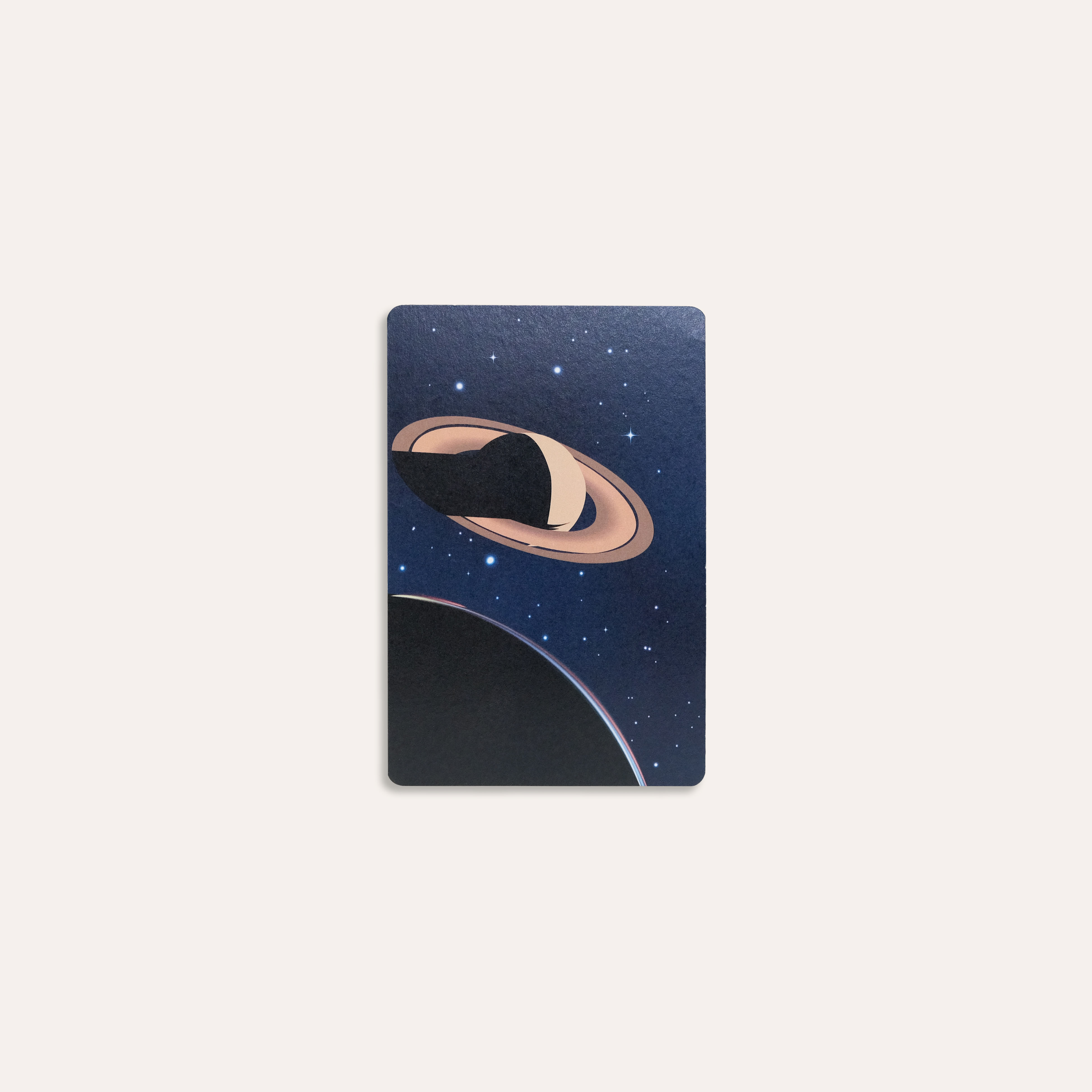 The two giants orbiting our sun, Saturn and Jupiter, are planets beyond humanity's reach yet so close to our imagination. As we look up into the sky, in our deepest slumbering thoughts, we wonder when our eyes witness these celestial wonders. Postcard 4in x 6in
